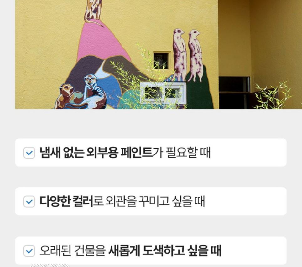Samhwa Water-based Paint for exterior use is odorless, has a variety of colors and pigments, is long-lasting and fast, has a short drying